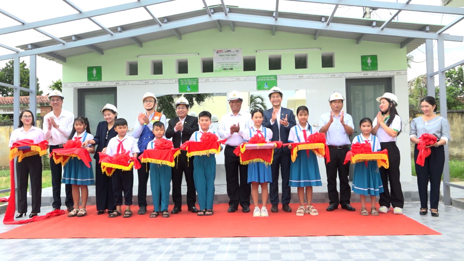 Cắt băng khánh thành khu nhà vệ sinh Trường Tiểu học Vĩnh Thạnh (xã Vĩnh Thạnh, tỉnh Gia Lai)